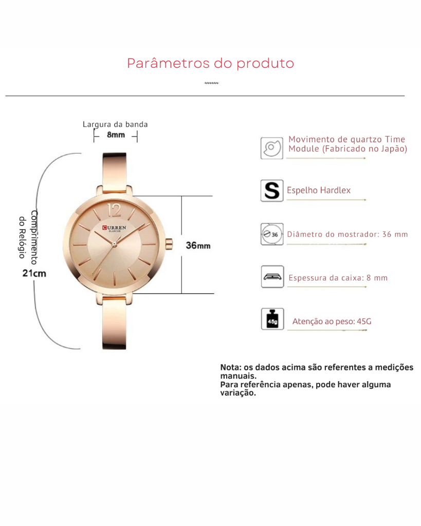 | Largura da Pulseira | 8 mm |