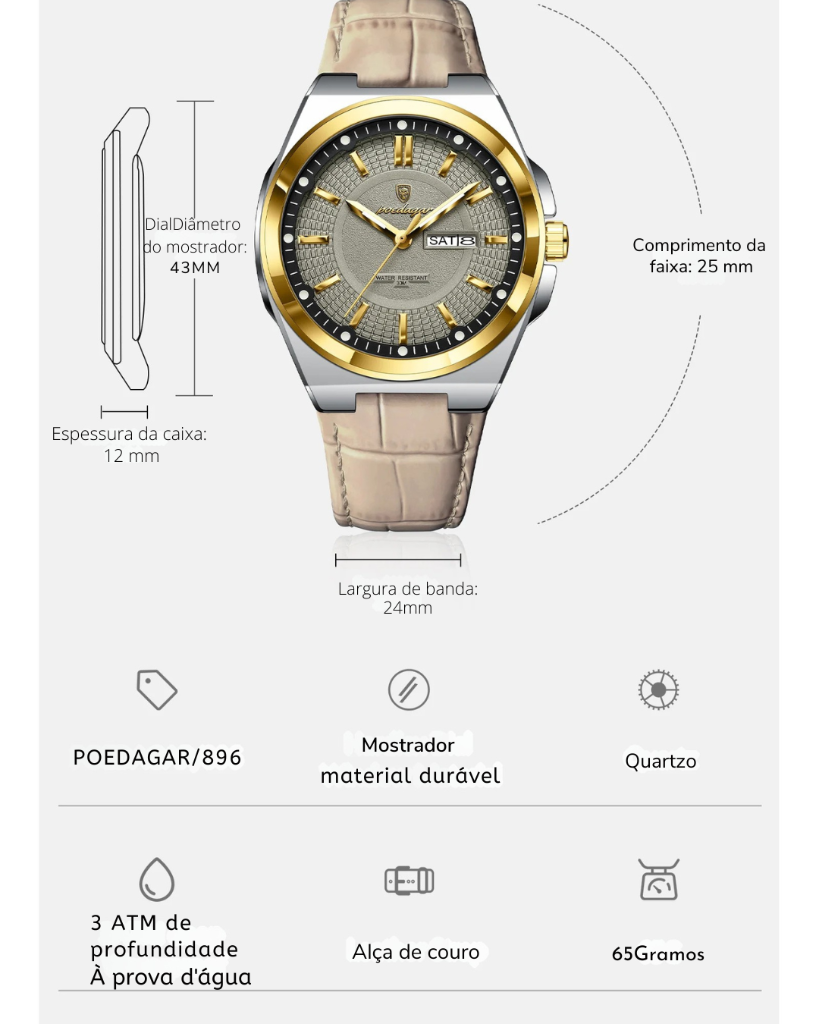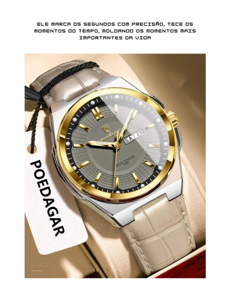 | ✔ Relógio POEDAGAR original ✔ Caixa POEDAGAR premium ✔ Lenço de limpeza ✔ Cartão de garantia |